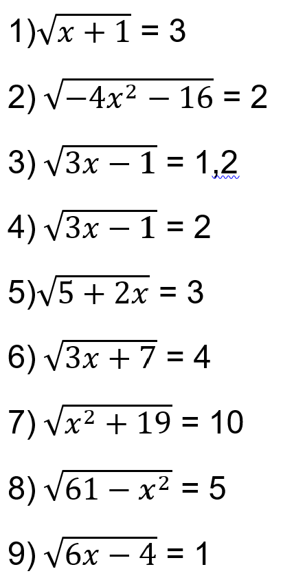 ա․√2 բ․√9 գ․ √x դ․√3 ե․√8x է․√35/5 ը․ √6/2