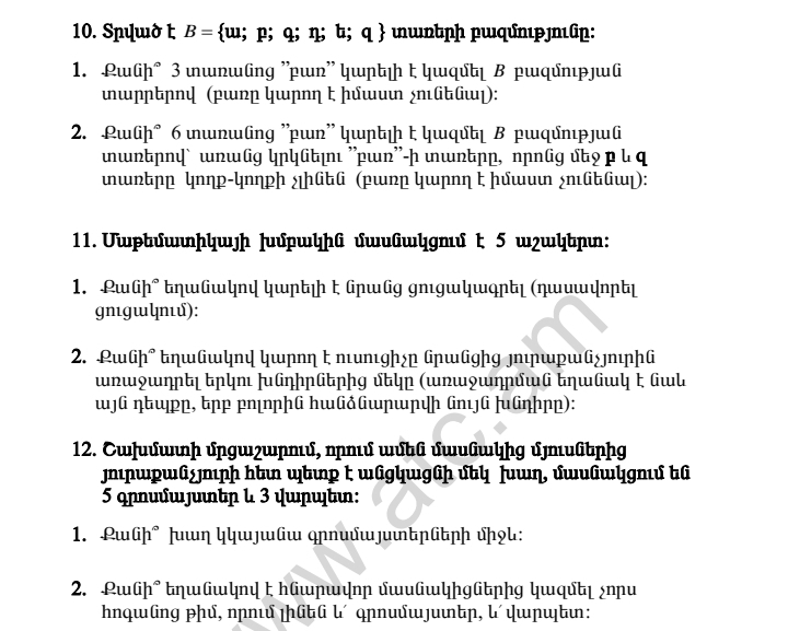 11. խնդիր նույն է ինչվոր հաշվեք 13 հոգուց քանի հնարավոր ձեվով կարող ենք պաեստաին խաղացող։ Դա նույն է, որ 13 հգուց կազմեք զույգեր՝ 13×12:2=78