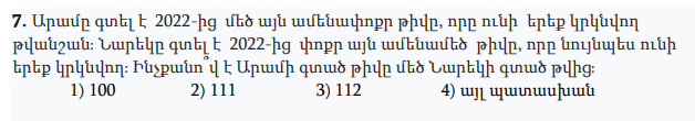 Խնդիր 4:Խնդրագրքից Խնդիր 1, 1-ից 22-ը,էջ22
