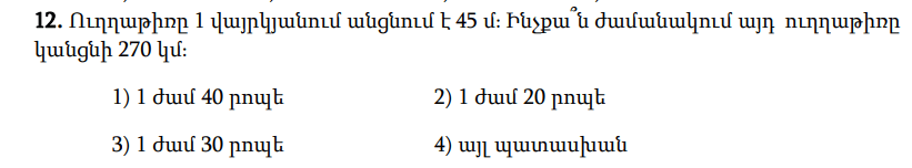 1) 105 կմ 2) 125 կմ 3) 140 կմ 4) 150 կմ