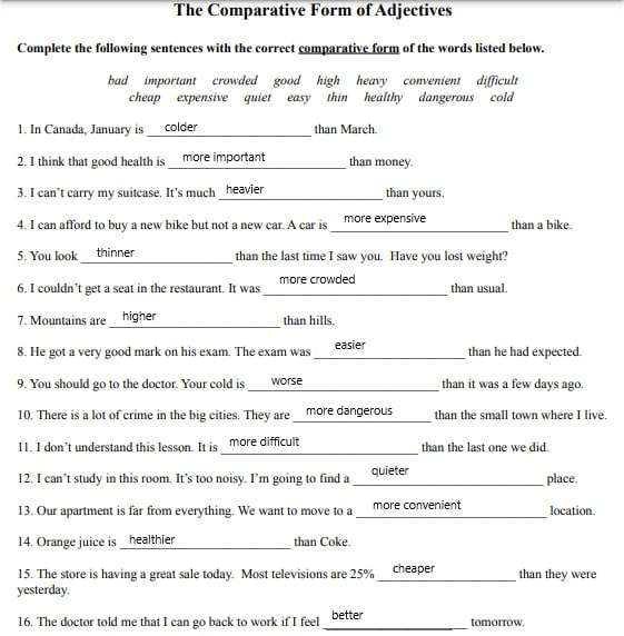 | 14. | comfortable | more comfortable | the most comfortable |